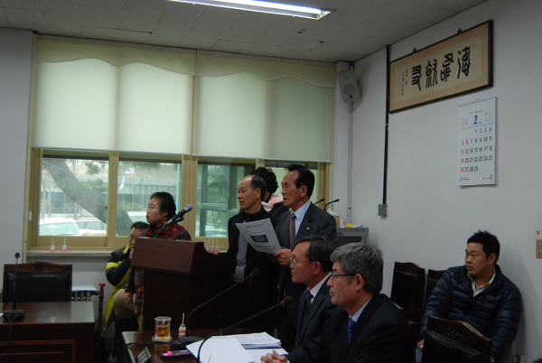 또 다른 농민단체 회원은 “농민들이 현 위치에 청사를 신축하겠다고 하는데 왜 자꾸 의회에서 반대하나. 우리 이야기를 듣고 방법상의 문제를 논의해야 하는 것 아니냐”며 의원들을 향한 불만의 소리를 높였다.