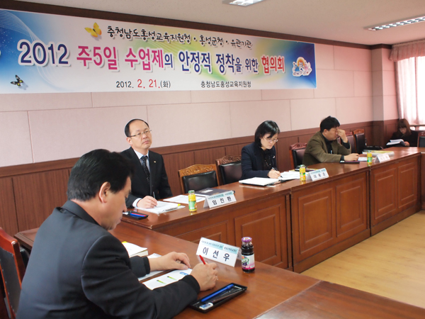홍성교육지원청(교육장 박익현)은 주5일제 수업 전면실시에 따른 학교 현장의 혼란을 방지하고 안정적인 정착을 위해 지역 유관기관이 한 자리에 모여 지원 방안을 모색하는 주5일제대비 교육청-지자체 연계협력방안 협의회를 지난 21일 개최했다.