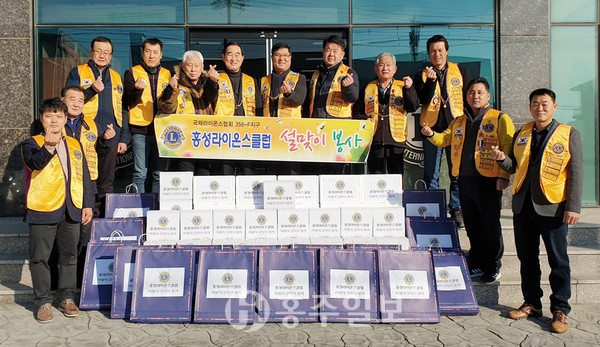 홍성라이온스클럽(회장 이순하)은 지난 18일 민족 최대 명절인 설을 앞두고 관내 어려운 이웃에게 명절선물을 전달하고, 홍성군장애인복지관과 사랑샘 보육원에 후원금을 전달하는 등 ‘설명절 맞이 이웃돕기 봉사’를 실시했다.