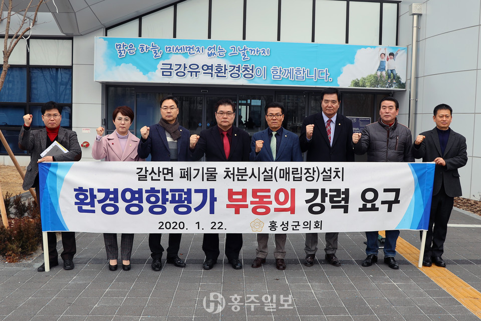 이 날 홍성군의회는 의장과 의원, 금강유역환경청 담당과장 등이 참석한 가운데 △전국에서 들어오는 산업폐기물의 운반과 매립과정에서 발생 될 분진, 악취, 소음 등으로 건강하고, 쾌적한 환경에서 생활할 군민들의 권리 침해 △폐기물처리시설에서 배출될 수 있는 각종 유독 물질에 대한 주변지역 주민들의 불안감 증대 △사업부지 위치상 폐기물이나 침출수가 갈산면 와룡천을 따라 간월호로 흘러갈 경우 홍성군 수자원보호구역으로 지정된 천수만 구역뿐만 아니라 남당항, 궁리항 지역의 심각한 2차 환경피해 발생 우려 등의 이유로 갈산면 폐기물처리시설 설치 계획을 전면 철회 할 것을 강력히 요구했다.
