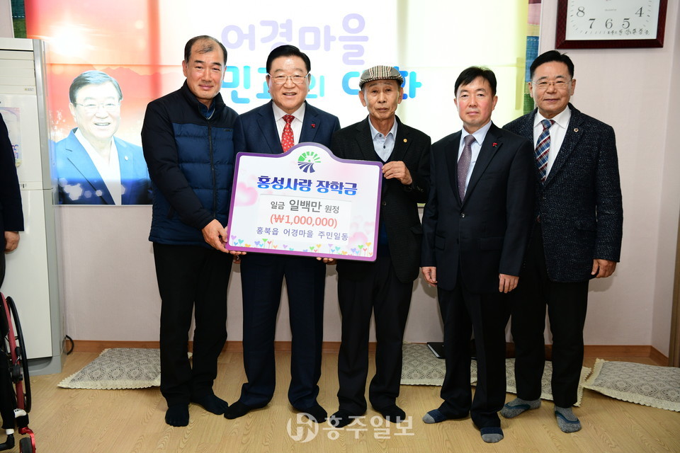 김석환 홍성군수가 민생현장 방문으로 홍북읍 어경마을을 방문한 지난 20일에는 주민들이 십시일반 모은 1백만 원을 홍성사랑장학회에 기탁했다.