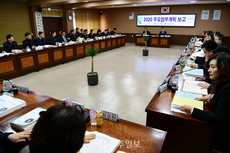 홍성군은 지난 21일 군청 회의실에서 김석환 군수와 이용록 부군수를 비롯한 각 담당관·과장, 직속기관·사업소장 및 군정자문단 등이 참석한 가운데 2020년 주요업무계획 보고회를 개최했다