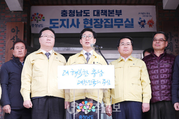 양 지사는 지난 1일 오후 아산 현장집무실에서 도 간부공무원들과 도 재난안전대책본부의 신종 코로나바이러스 감염증 관련 대응 상황을 공유하고 대책을 논의했다.