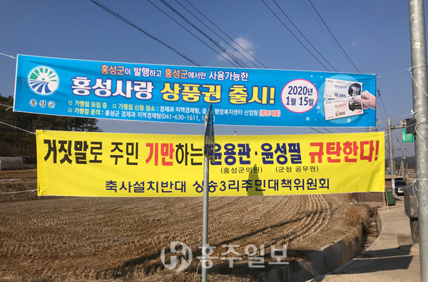 지난 3일 대책위는 마을 입구와 도로에 ‘군의원과 공무원을 규탄한다’는 대형 현수막을 설치하고 윤 의원 의원직 사퇴운동을 벌이겠다고 나선 상황이다.