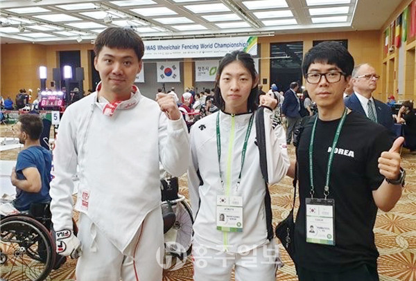 총 7명의 선수로 구성돼 있는 홍성군휠체어펜싱팀은 지난 2016년 김정아 선수가 국가대표로 활동한 후 4년 만에 이태권(26·남·뇌병변 2급) 선수와 권효경(18·여·뇌병변 3급) 선수가 국가대표로 최종 선발됐다.<사진>