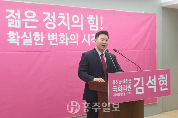 미래통합당 소속 김석현 예비후보가 지난 21일 충남도청 브리핑룸에서 기자회견을 열고 홍성·예산 국회의원 출마를 공식화 했다.