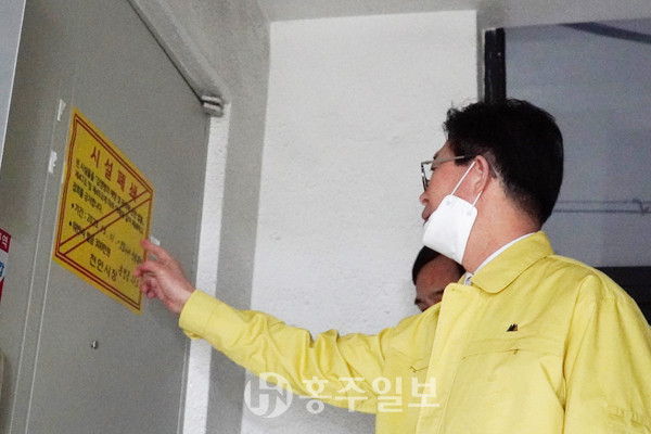 충남도내 코로나19 확진자 급증 추세로 도민 불안감이 커지고 있는 가운데, 양승조 지사가 신천지 관련 시설을 불시 점검했다.<사진> 도는 지난 1일 밤 천안시 소재 신천지 예수교 교회 등 관련 시설 3곳에 대해 폐쇄 등 조치 상황을 긴급 점검했다고 2일 밝혔다.