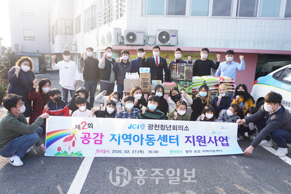 광천청년회의소(회장 이성행)는 회원 20여 명이 함께한 가운데 지난 27일 광천 공감 지역아동센터를 방문해 어린이들을 위해 쌀과 김, 학용품 등을 전달하고, 코로나 확산 예방 대비로 손소독제와 마스크를 제공했다. 특히 회원들이 학생들이 휴대하며 언제든지 사용할 수 있도록 개인 휴대용세정제를 직접 제작해 제공하는 등 세심한 배려로 지역 어린이들에게 사랑을 전했다.