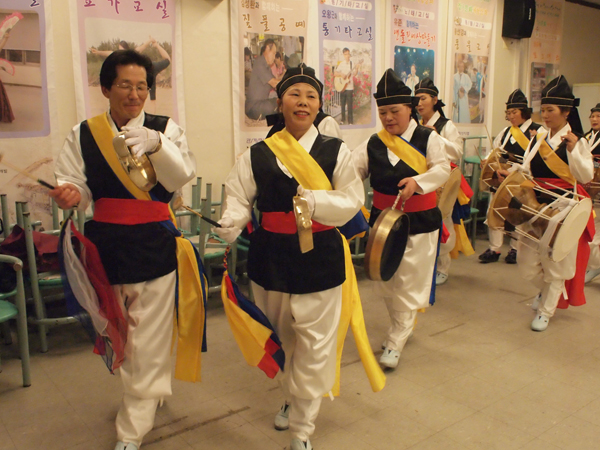 덩덩 쿵덕쿵...덩덩 쿵덕쿵...개개개갱...쿵기덕 쿵기덕...15평 남짓의 연습실에 울리는 풍물 가락에 머리부터 발끝까지 모든 세포들이 박자에 맞추어 움직이는 듯 하다. 콘크리트 건물 한 켠에 마련된 공간인지라 유난히 악기소리가 크게 응집되어 듣는 이의 마음을 뒤흔든다.