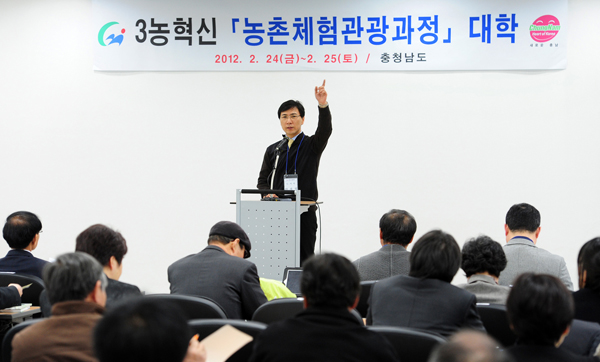 충남도는 지난달 24일부터 1박 2일간 농업기술원 농업인 대학에서 안희정 도지사를 비롯 농어촌체험마을 대표 등 80여명이 참석한 가운데 제2회 3농혁신대학 ‘농촌체험관광과정’반을 운영했다.