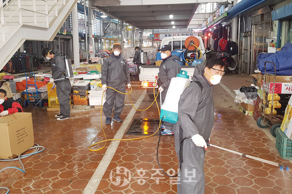 광천읍행정복지센터(읍장 신주철)는 지난 18일 광천전통시장상인회와 합동으로 코로나19 확산 방지를 위해 전통시장을 비롯한 다중이용시설 등을 찾아 방역활동을 실시했다.