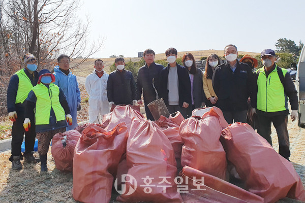 홍북읍행정복지센터(읍장 이선용)는 지난 20일 국내 최대 원삼국 환호 취락인 ‘석택리 유적지’ 주변을 홍북읍 직원 및 공공근로사업 참여자, 마을 주민 등이 참여한 가운데 봄맞이 대청소를 실시했다.