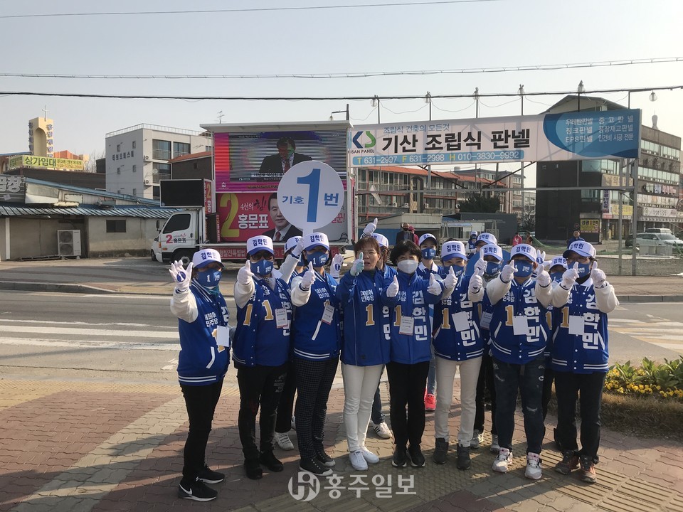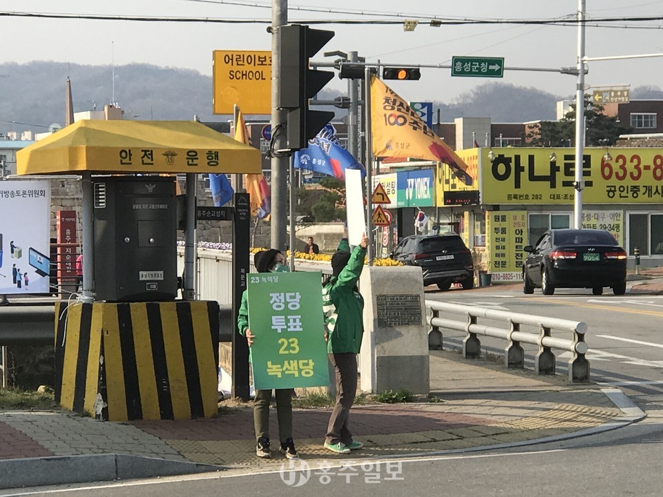 제21대 총선 공식 선거운동이 4월 2일 0시부터 시작됐다. 이날 오전부터 홍성읍 덕산통사거리는 홍성·예산 지역구에 출마한 김학민(더불어민주당) 후보와 홍문표(미래통합당) 후보, 그리고 정당투표를 호소하는 녹색당 등의 선거 선거운동원들로 북적였다. 각 후보 선거운동원들은 도로를 사이에 두고 출근길 주민들에게 연신 허리를 굽히며 소속정당을 알리기 시작했다. 공식선거운동기간은 오는 14일까지 총 13일간이다.