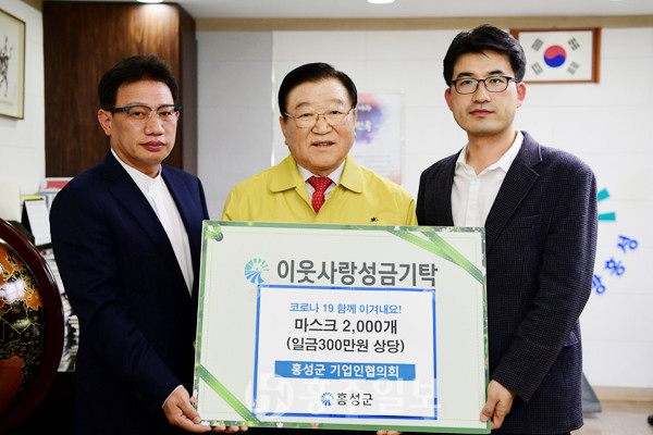 코로나19로 얼어붙은 지역경제 위기 속에도 관내 기업들의 기부 행렬이 이어지고 있다. 선경전기(조병철 대표)는 180만 원 상당의 손소독제 400개를, 홍성군기업인협의회(회장 명근영)는 300만 원 상당의 마스크 2000개를 군에 전달했다.