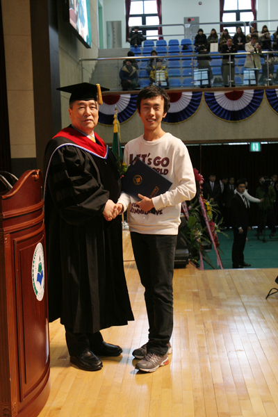 함기선 총장은 축사에서 “여러분의 시야를 세계에 두고 앞으로 4년 동안 적어도 2개의 외국어를 공부하여 국제화시대와 더불어 살아갈 능력을 기르기 바란다”고 강조했다.
