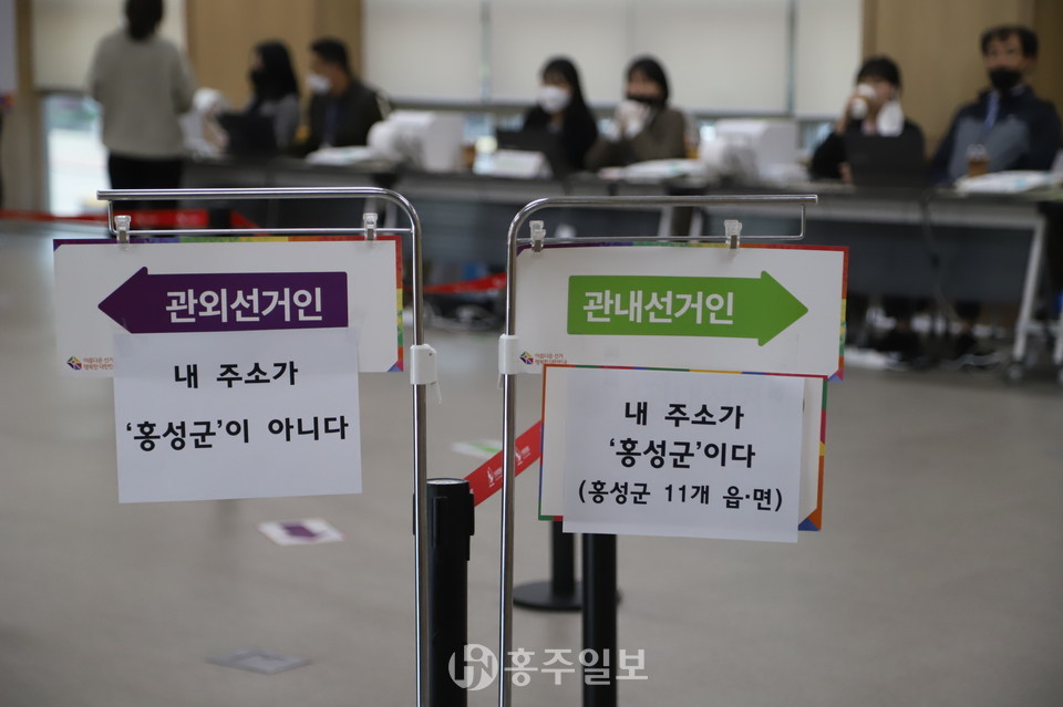 사전투표는 ‘관내선거인’과 ‘관외선거인’으로 구분해 진행된다. 홍성‧예산선거구 관내선거인은 본인확인을 한 후 지역구‧정당 투표용지 각1장씩 2장을 받아 기표소에서 기표한 후 투표함에 넣으면 된다. 관외선거인은 자신이 기표한 투표용지를 회송용 봉투에 봉함한 후 투표함에 넣는 방식이다.