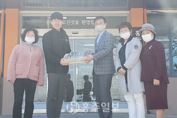지난 13일 홍동면 홍원리(하원마을)에 위치한 기독교한국침례회 홍원교회(목사 이문용)에서 관내 8개 기관단체와 주민에게 수제 면마스크와 비누를 기부해 화제가 되고 있다.<사진>