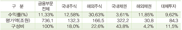 | * 국민연금 2019년도 기금운용 수익률 11. 3%, 수익금 73조원 * 기금적립금 전년대비 약 100조 원 증가, 기금운용본부 설립 후 수익률 최고 |