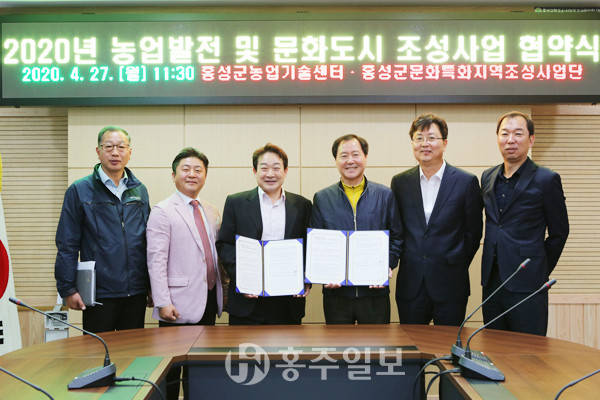 홍성군농업기술센터(소장 윤길선)는 지난 27일 홍성군문화특화지역조성사업단과 △농업의 지속적인 발전 및 문화특화 분야 사업에 대한 협력 △인적 네트워크 형성 및 교류 △공연 및 전시 활동 등 홍성군 농업발전과 문화도시 조성사업을 위한 업무협약을 체결했다.