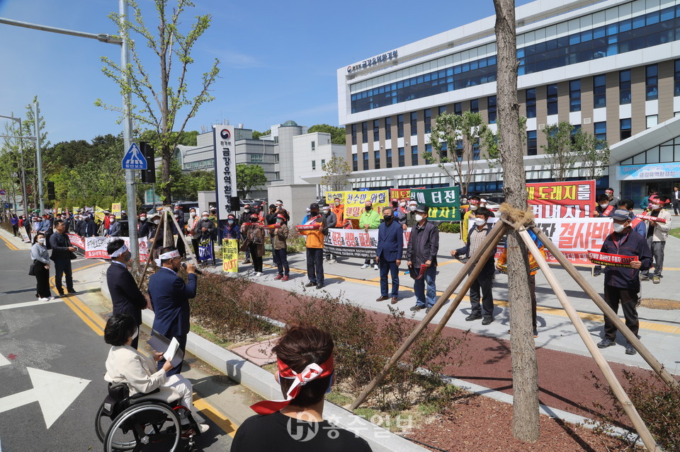 홍성 주민 326명이 바쁜 농번기 생업을 뒤로한 채 지난 7일 대형버스 8대에 나눠 타고 대전에 위치한 ‘금강유역환경청’을 찾아 민간업자 KC환경개발이 홍성 오두리에 폐기물처리시설 사업을 추진하기 위해 제출한 ‘환경영향평가서’에 부동의해 줄 것을 촉구하는 집회를 열었다.