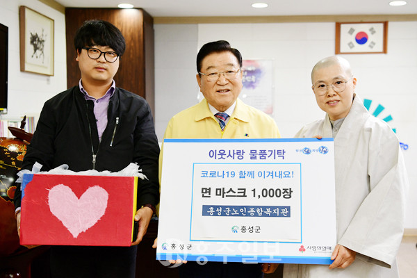 또한 홍성군노인종합복지관 직원 일동은 코로나19 지역사회 감염 예방을 위해 직접 제작한 마스크 1000장을 홍성군에 기부했다.