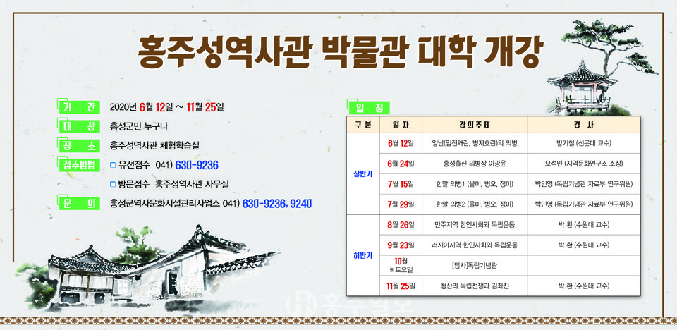 홍주성역사관이 홍성군민을 대상으로 ‘2020년도 홍주성역사관 박물관대학’을 운영한다.