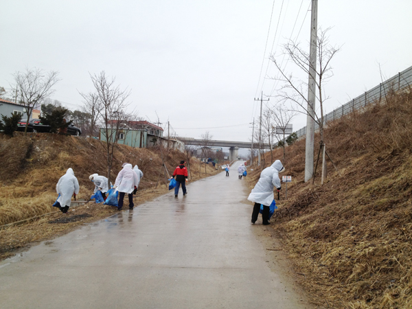 갈산면 남녀새마을지도자(회장 전용성·전양숙) 회원 50여명은 지난 5일 궂은 날씨에도 불구하고 갈산면 시가지에서 IC부근 일대의 각종 폐기물과 생활쓰레기 등을 말끔하게 치우는 등 자연정화활동을 실시했다. 갈산면 새마을지도자회는 정기적으로 자연정화활동을 할뿐만 아니라 독거노인에 대한 목욕봉사 및 위문활동을 실시하는 등 이웃사랑을 몸소 실천하고 있으며, 소외된 계층에 대한 봉사활동과 지역발전을 위해 최선을 다하고 있다.