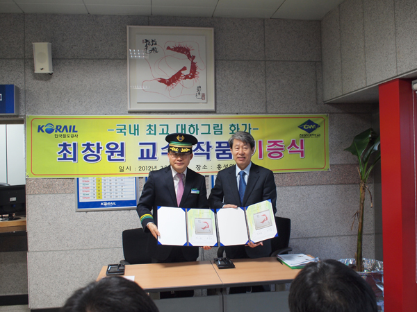 천명호 홍성역장은 “역을 이용하는 고객들을 위해 소중한 작품을 선뜻 기증해 주신 최창원 교수님께 감사드리며, 앞으로도 이러한 수준 높은 작품들을 많이 유치하여 고객서비스 수준을 한단계 높일 수 있도록 노력하겠다”고 말했다.