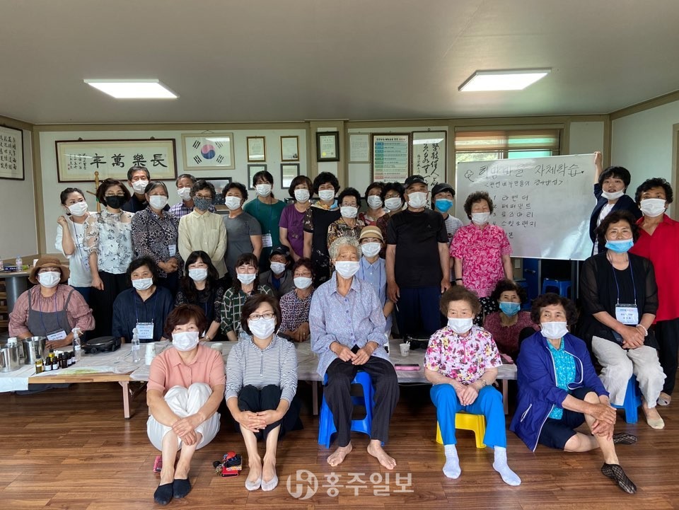 희망마을자체학습이란 홍성군 마을만들기 지원센터에서 시행한 관내 마을주민들이 두 반으로 나눠져서 오서산 산촌마을센터에서 이론 수업과 만들기 실습과정을 이수한 후 직접 천연비누제작 수업을 진행하는 강사역할을 맡아 각 반별로 금마면 가야마을과 갈산면 노동마을의 사람들에게 천연비누제작법을 가르쳐주는 방식의 ‘일일 마을강사 되기 체험활동’이자 지역공동체성을 강화하는 것을 목적으로 둔 사업이다.