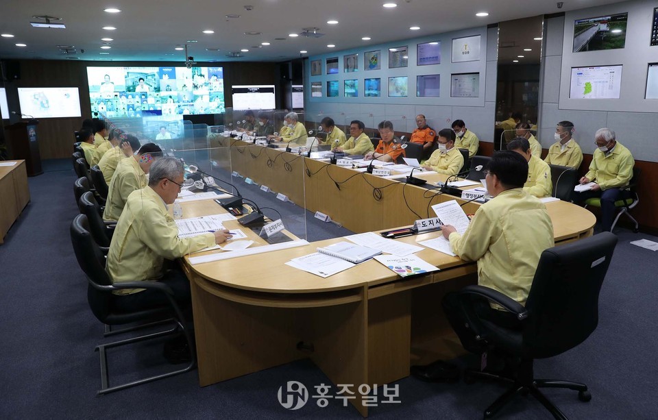 양승조 지사는 24일 정세균 국무총리 주재 코로나19 대응 중앙대책본부 영상회의에 참석해 ‘청정 해수욕장 만들기’ 추진 계획과 대응 방안 등 새로운 방역 시책을 설명했다.<사진>
