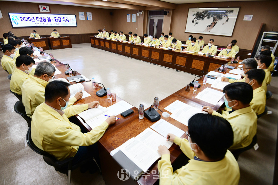 김석환 홍성군수는 지난 19일 개최된 읍·면장회의에서 이같이 밝히고, 2020년 상반기 수고한 간부공무원들을 격려하며 하반기 계획을 공유하며 지역발전을 위해 다함께 노력할 것을 주문했다.