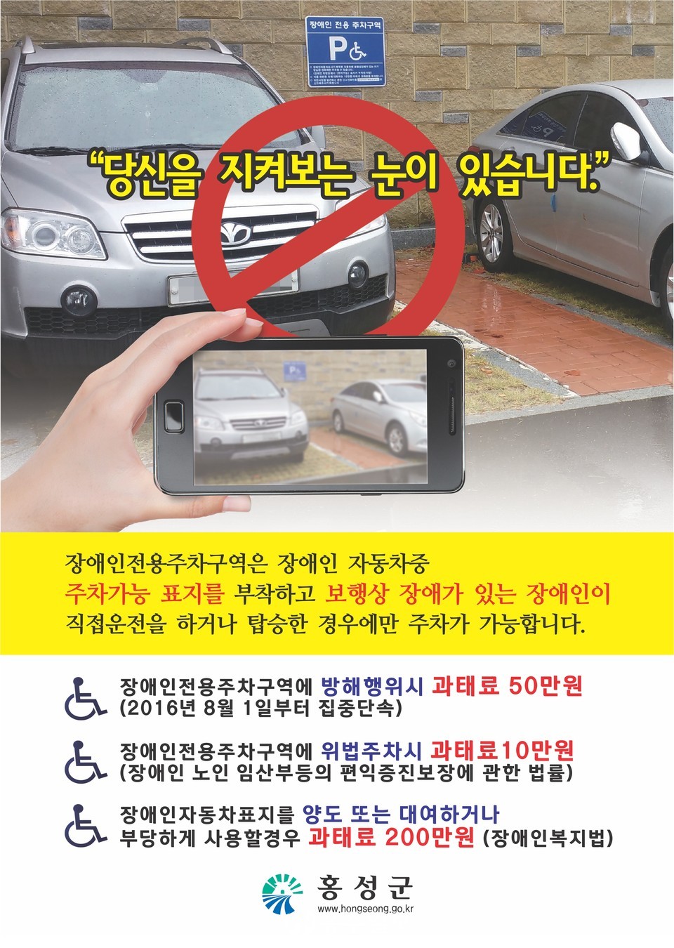 군에 따르면 장애인전용주차구역 내 불법주차 등에 따른 민원이 지속적으로 제기됨에 따라 홍성군과 장애인편의시설지원센터가 단속반을 편성해 점검에 나선다.