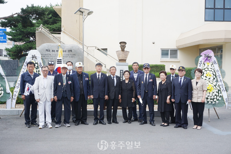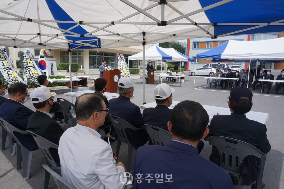 충남드론항공고등학교총동창회(회장 김경환)는 지난달 28일 충남드론항공고등학교 교정에서 관계자 100여명이 함께한 가운데 연평해전 호국영웅 故한상국 상사의 위훈을 기리고자 추모식을 거행했다.<사진>