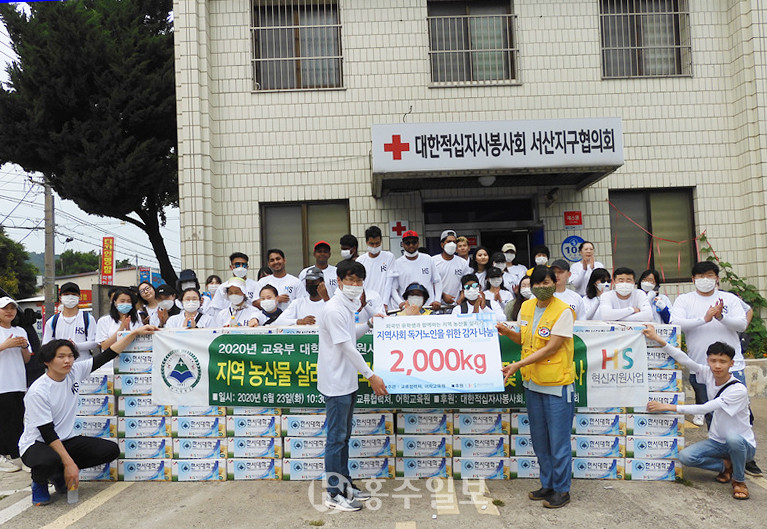 한서대 외국인 유학생들이 코로나19로 힘든 농민과 독거노인을 돕는 행사를 펼쳤다고 25일 밝혔다. 한서대 어학교육원과 학부·대학원에 재학 중인 5개 나라 출신 외국인 유학생 46명은 한서대 교직원 12명, 대한적십자사봉사회 4명과 함께 코로나19 때문에 일손 구하기가 어려운 서산시 대산읍 농가를 찾아 감자 캐기 봉사활동을 펼쳤다. 참가자들은 자신들이 캔 감자 2000kg을 구매해 지역사회의 독거노인들에게 전달되도록 대한적십자사 서산지사에 기증했다.