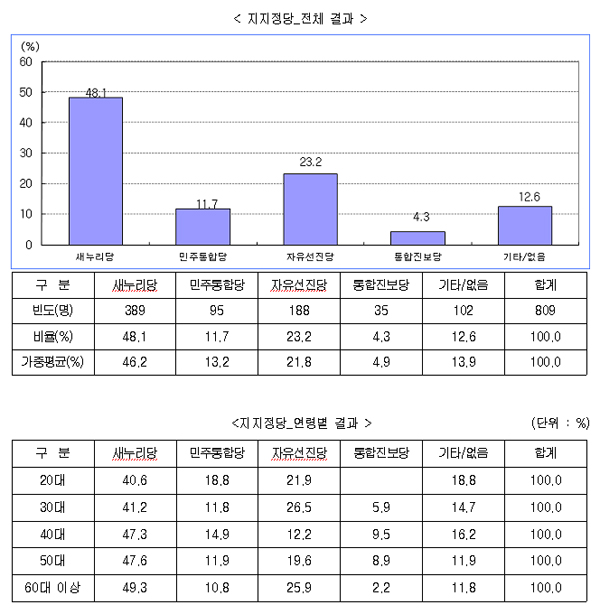 지지정당 및 후보 지지도에 대해 살펴보기 위한 것임