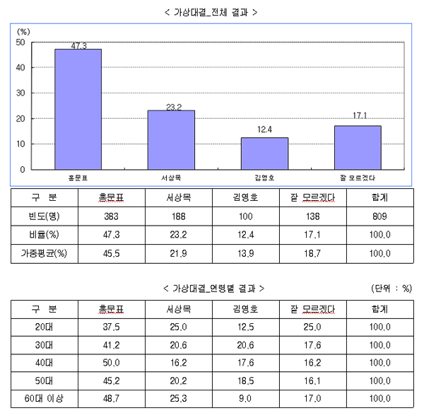 보정방법 : 연령대별⋅성별 지역 유권자 비율에 의해 가중평균함.