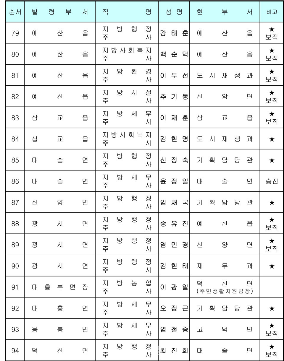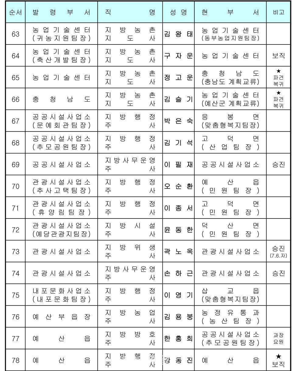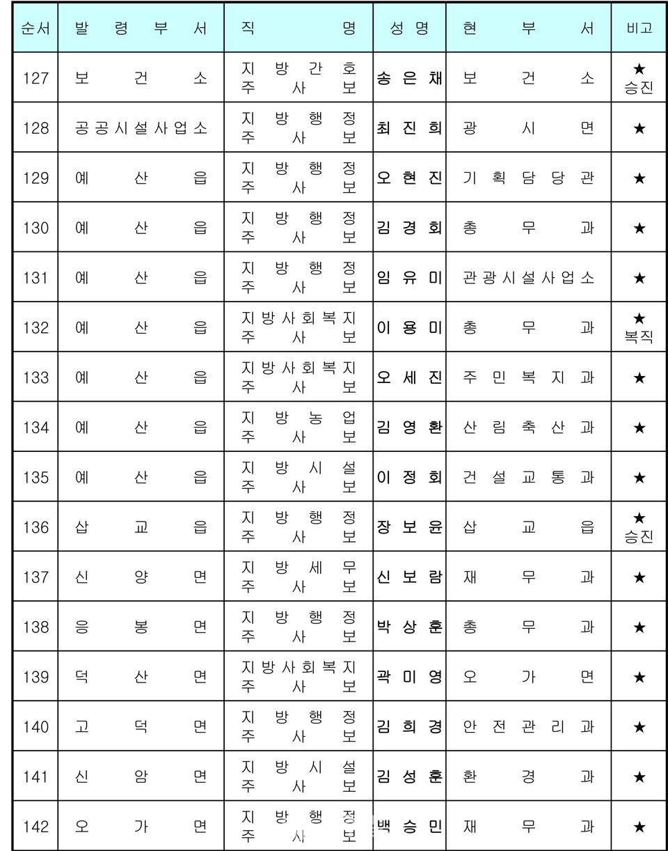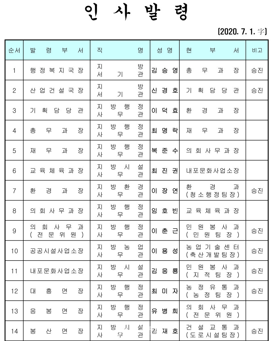 예산군 인사발령 〈2020년 7월 1일자〉