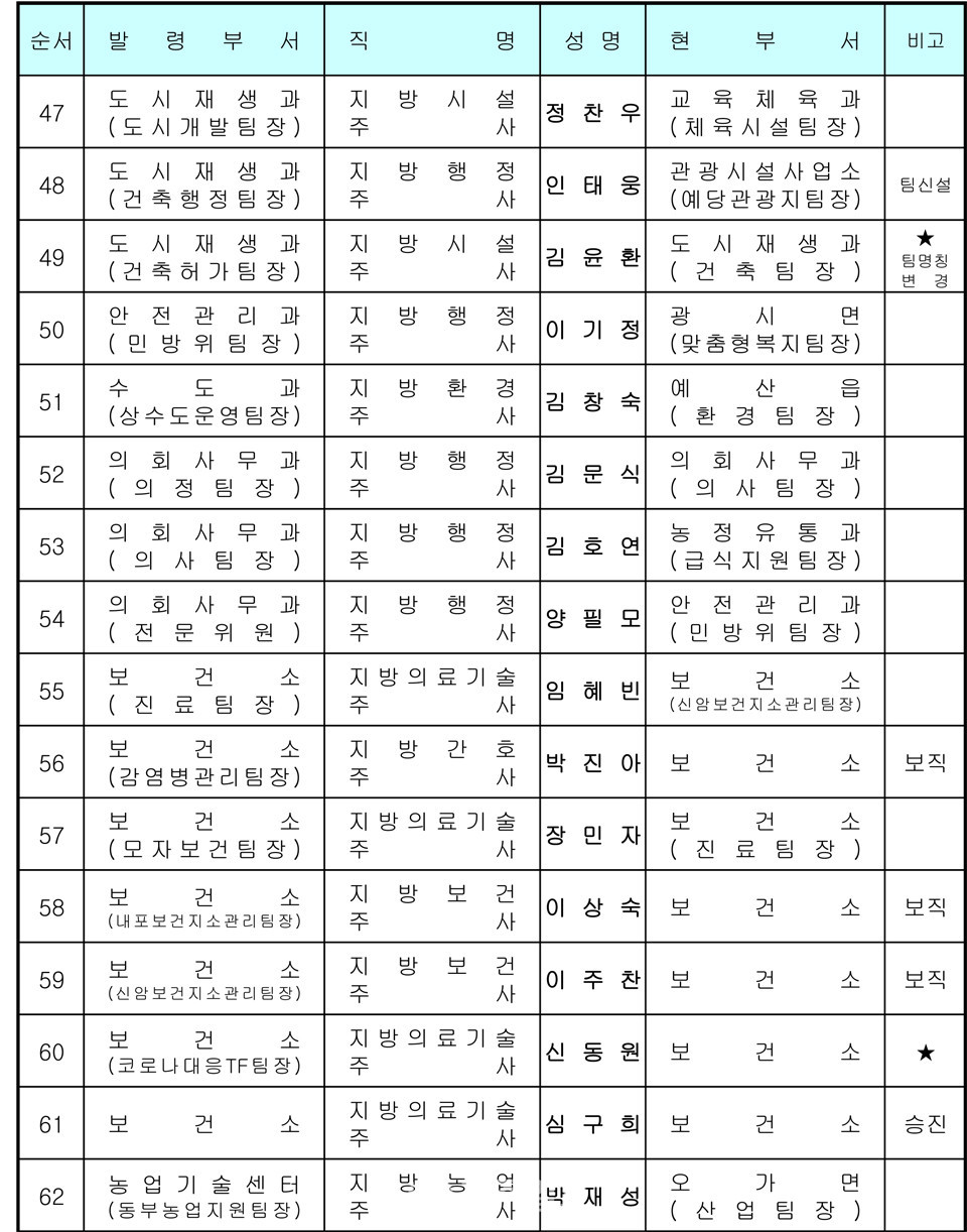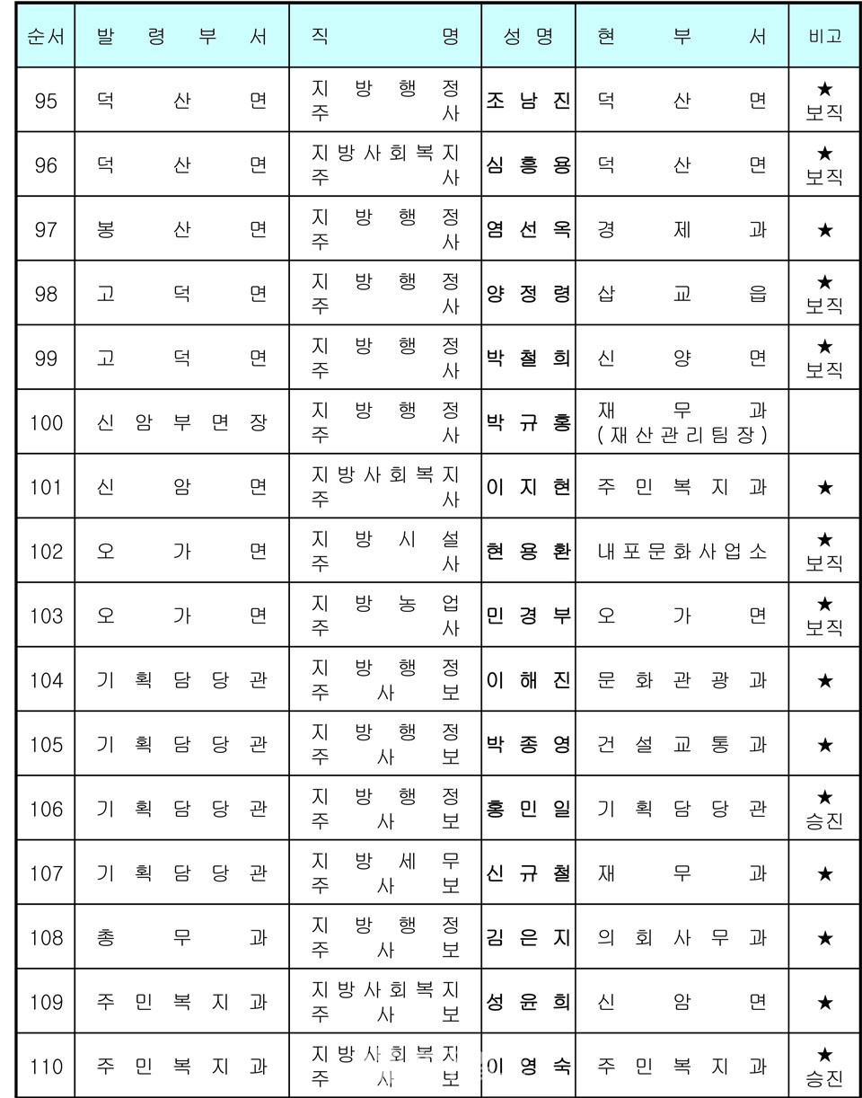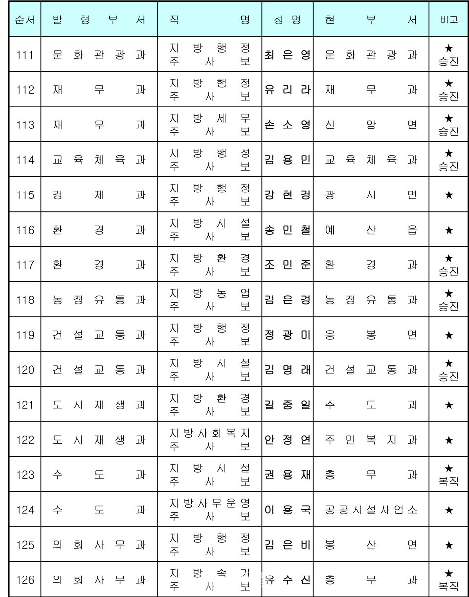 예산군 인사발령 〈2020년 7월 1일자〉