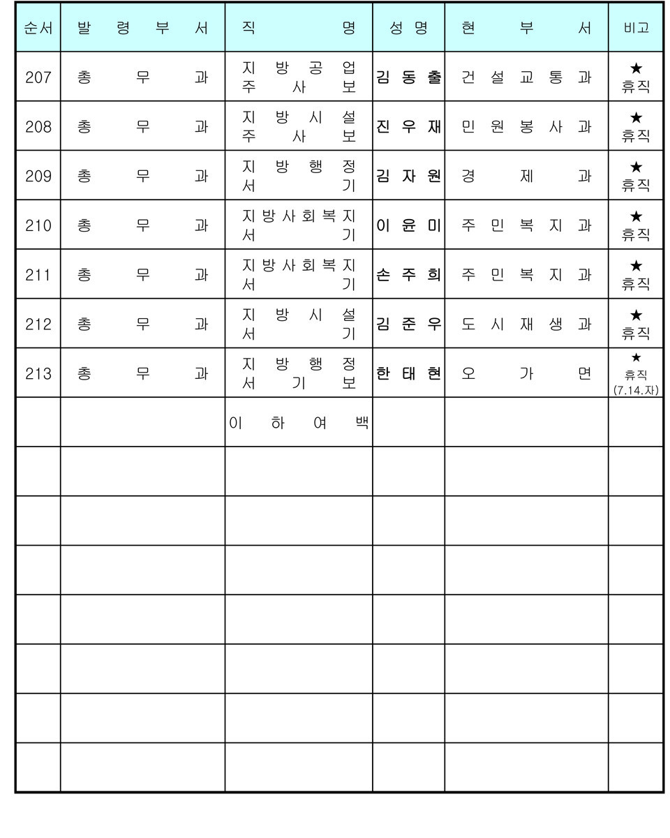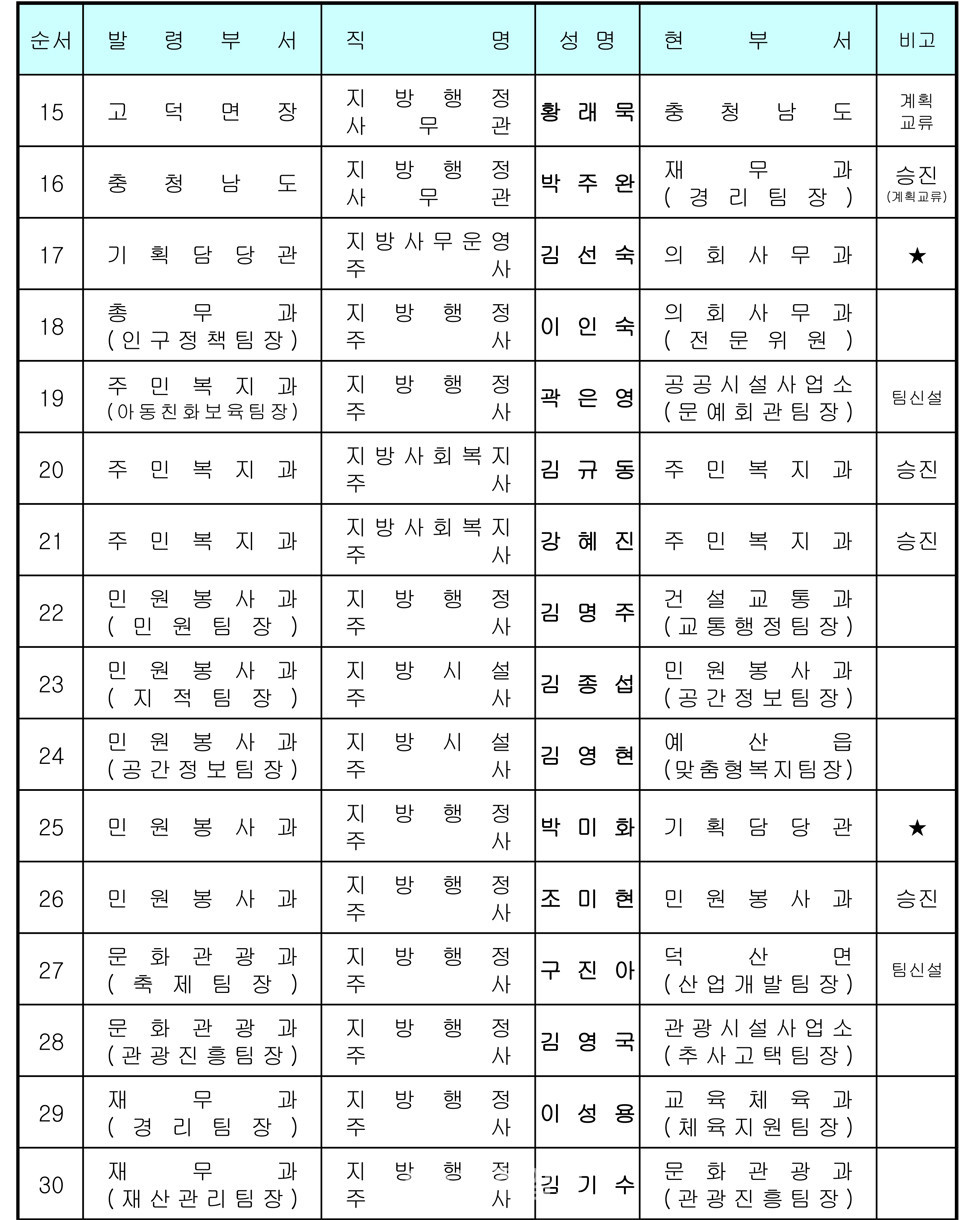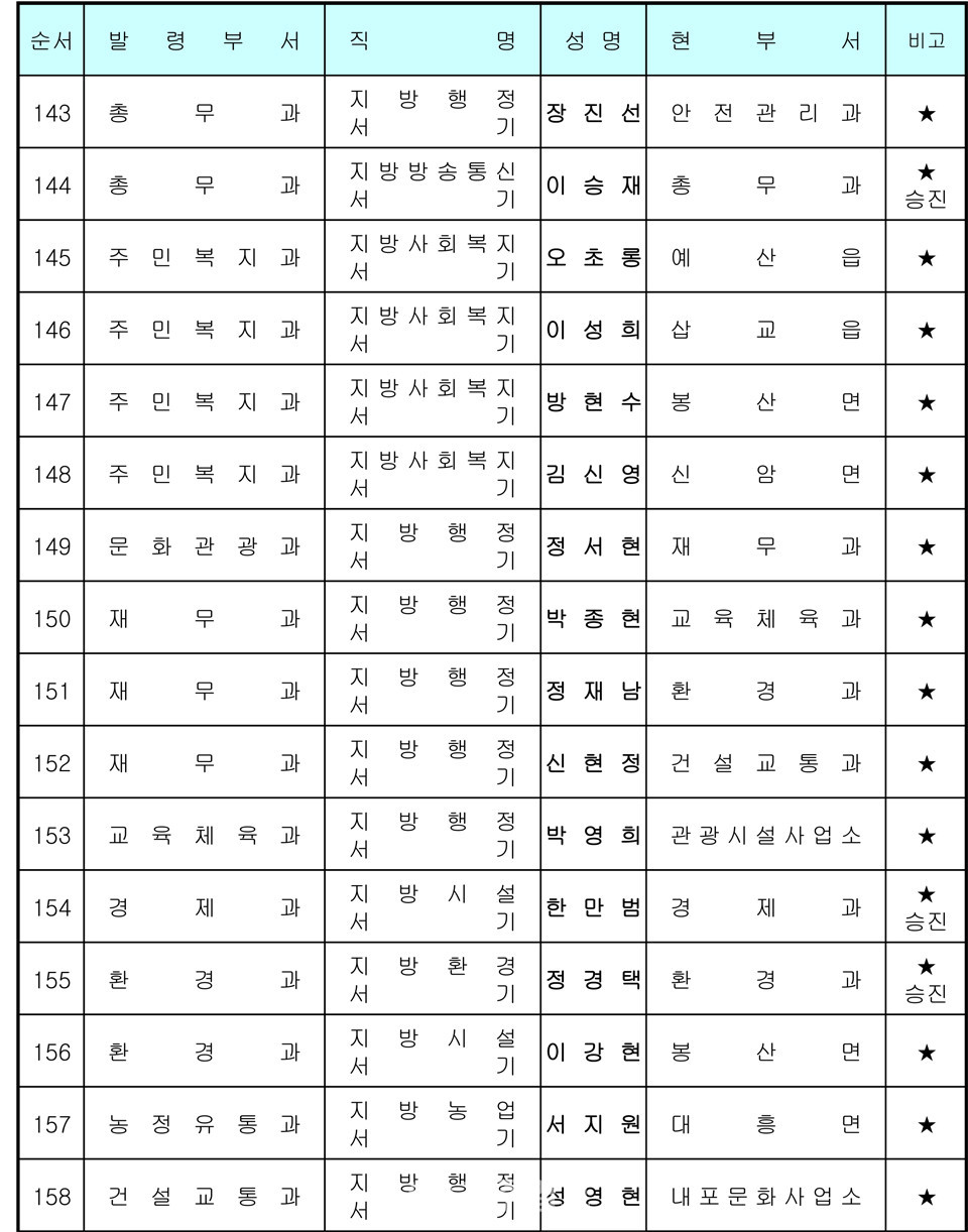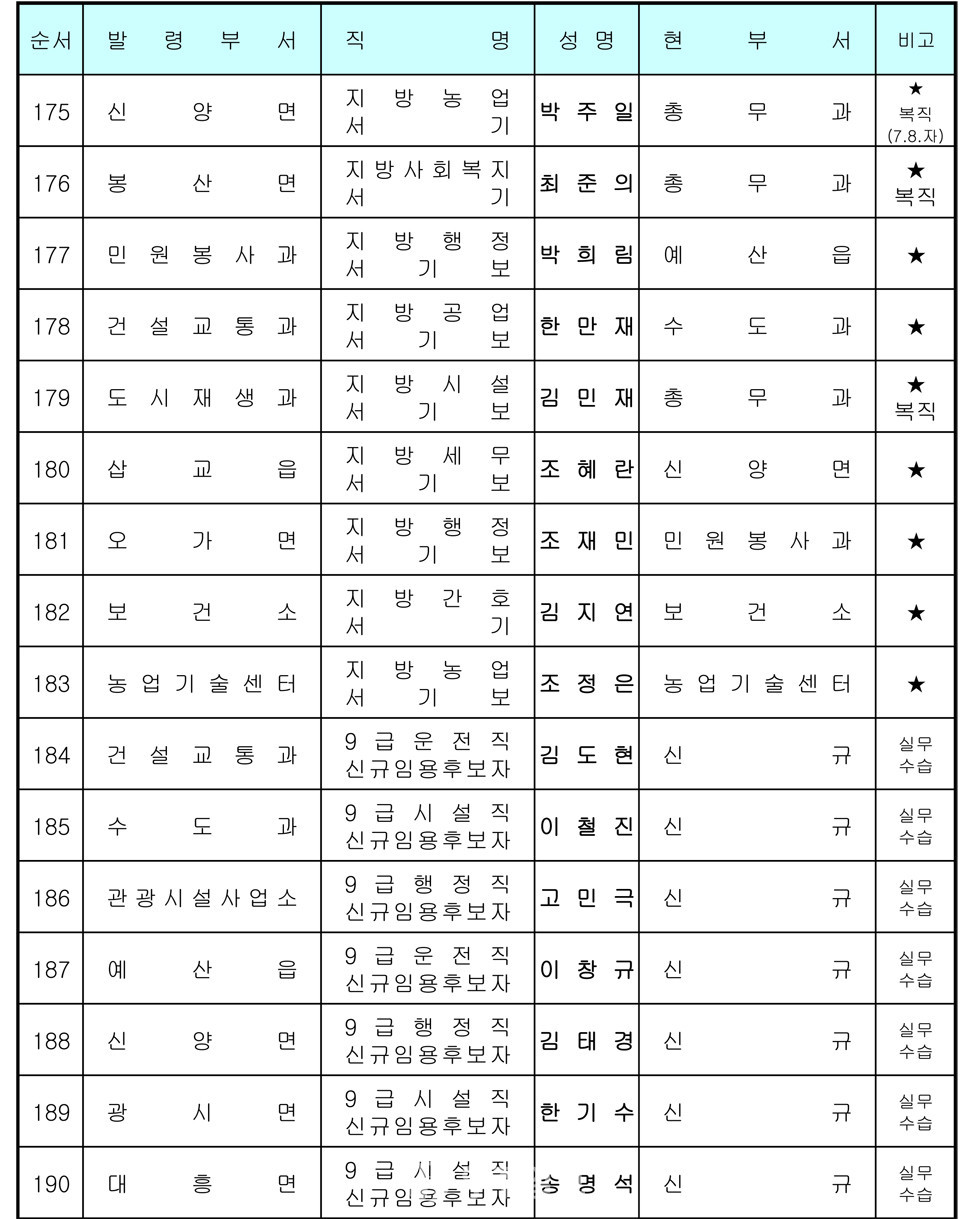 예산군 인사발령 〈2020년 7월 1일자〉