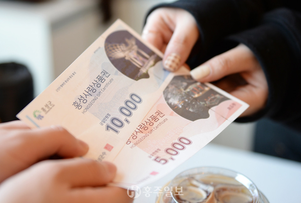 군은 지난 1월 15일부터 홍성사랑상품권 판매에 나섰으며 현재까지 135억 원 발행, 약 63억 원의 판매고를 올렸고, 가맹점 수는 2136개소이다. 한편 군은 지난 1일부터 지역경제 활성화 위해 홍성사랑상품권 10% 특별할인 판매에 들어갔으며 1인당 1회 구매한도는 30만원으로 제한된다.