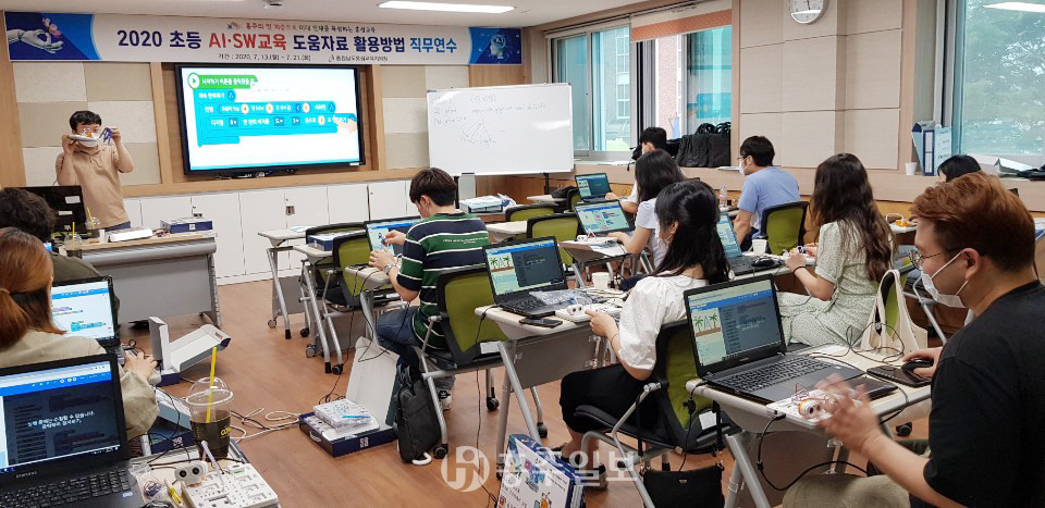 홍성교육지원청(교육장 주도연)은 지난 13일부터 21일까지 관내 초등 6학년 담임교사 40명을 대상으로 2020 초등 AI·SW교육 도움자료 활용방법 직무연수를 실시했다.<사진>