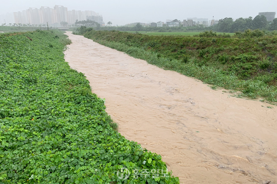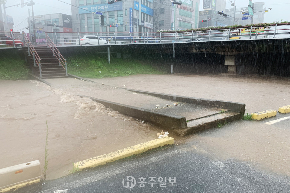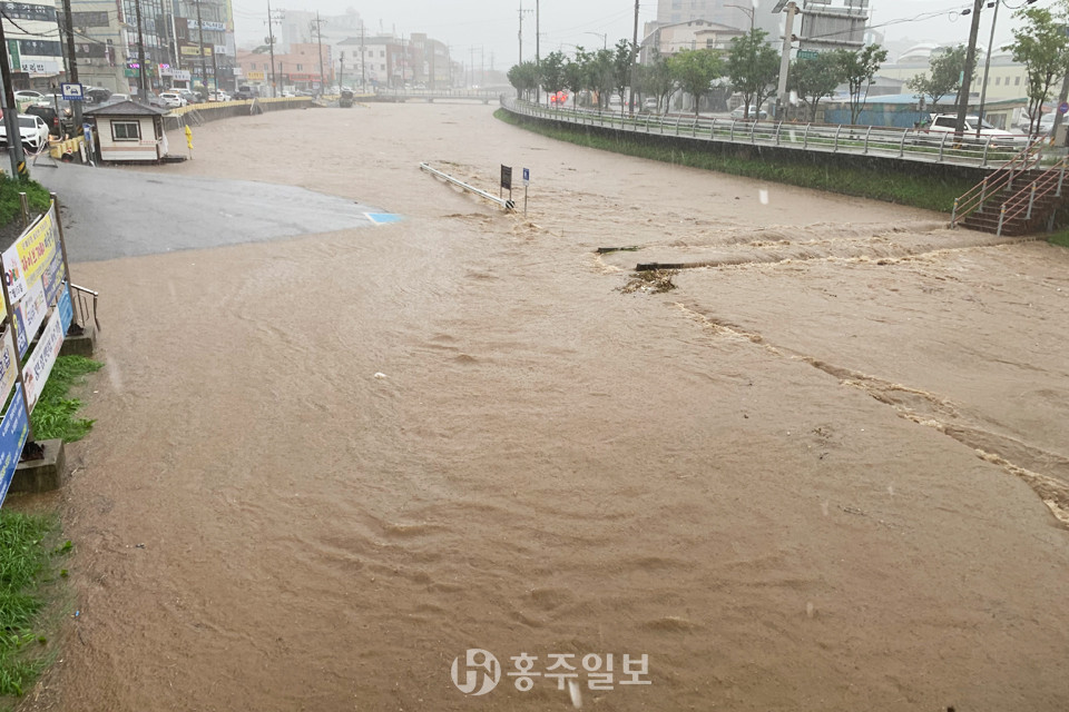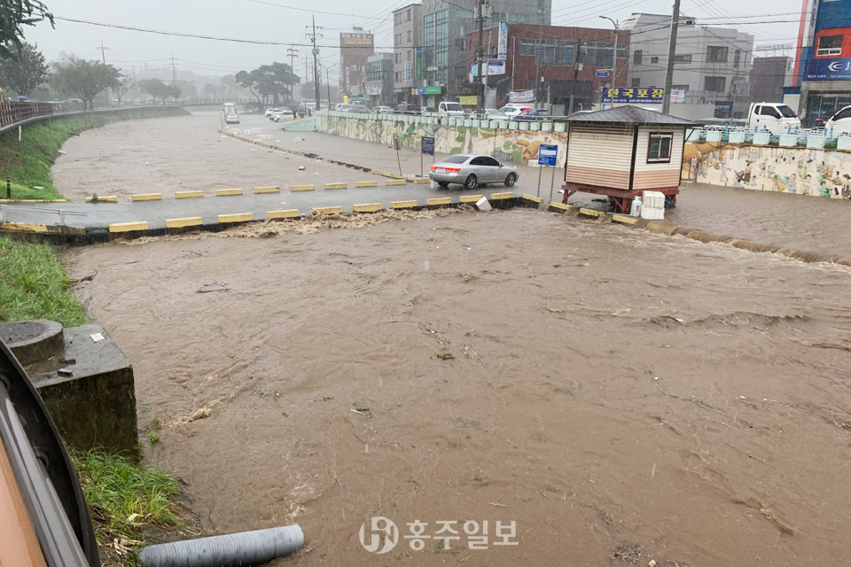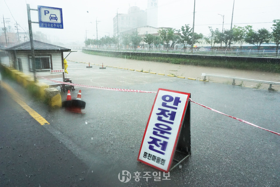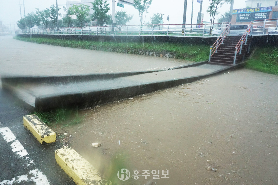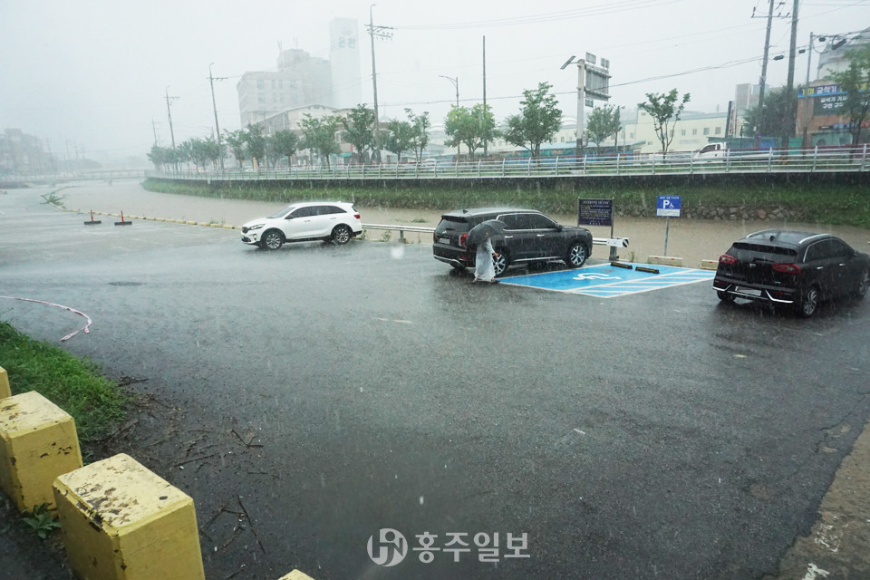 홍성지역에 호우경보가 발효됐던 가운데 국지성 호우로 홍성천이 지난 2016년 범람 이후로 4년 만에 하상주차장이 침수되는 등 크고 작은 피해가 잇달았다.