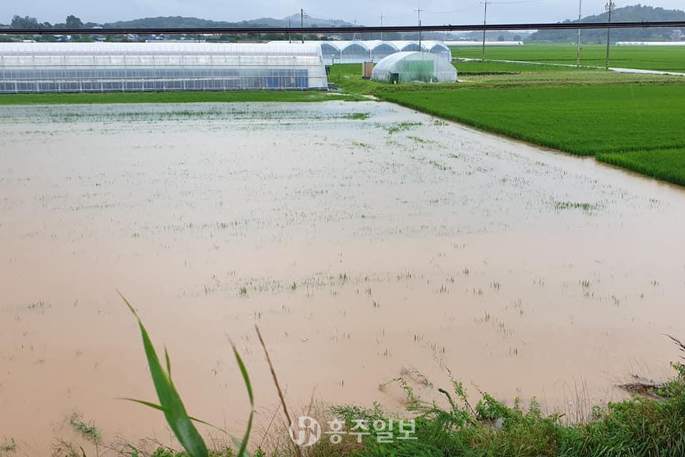 광천천 범람·광천전통시장 침수… 11개 읍·면 전역 농작물 피해