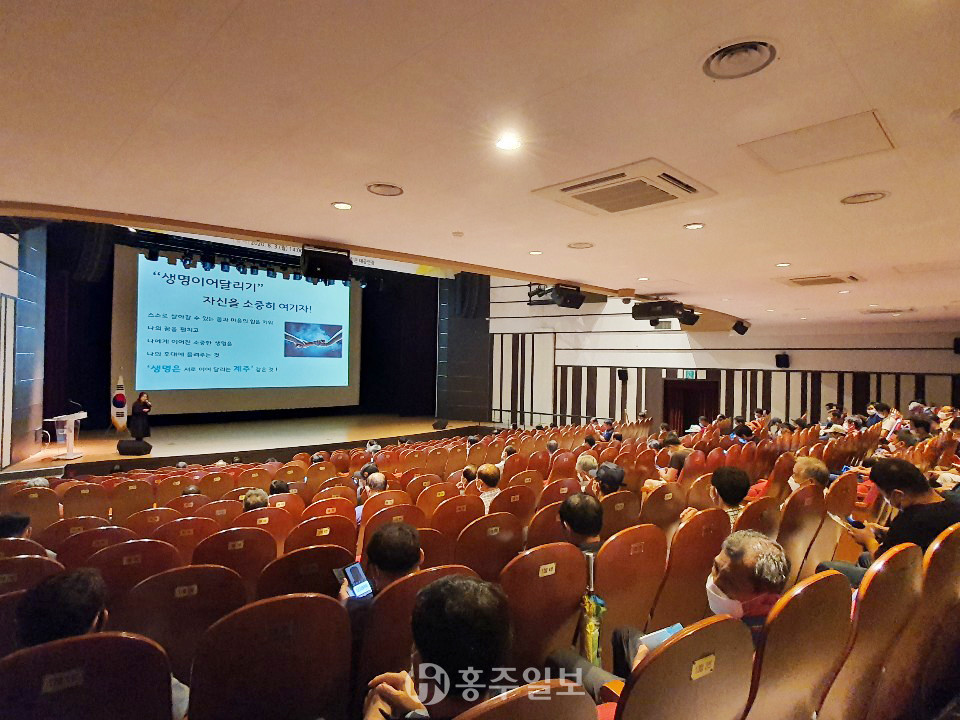 지난 3일 홍성군은 홍주문화회관에서 자살률 감소를 위한 생명사랑지킴이(게이트키퍼)양성 교육과 농약안전보관함 보급사업 사전설명회를 실시했다. 홍성군자살률은 매년 감소하고 있지만 65세 이상 노인 자살률은 전국수준을 웃돌아 어르신을 위한 생명존중 자살예방사업의 필요성이 대두돼 왔다. 이에 보건소는 11개 읍·면 마을 이장단과 농약안전보관함 배구 가구를 대상으로 생명사랑지킴이 양성교육을 실시했다.