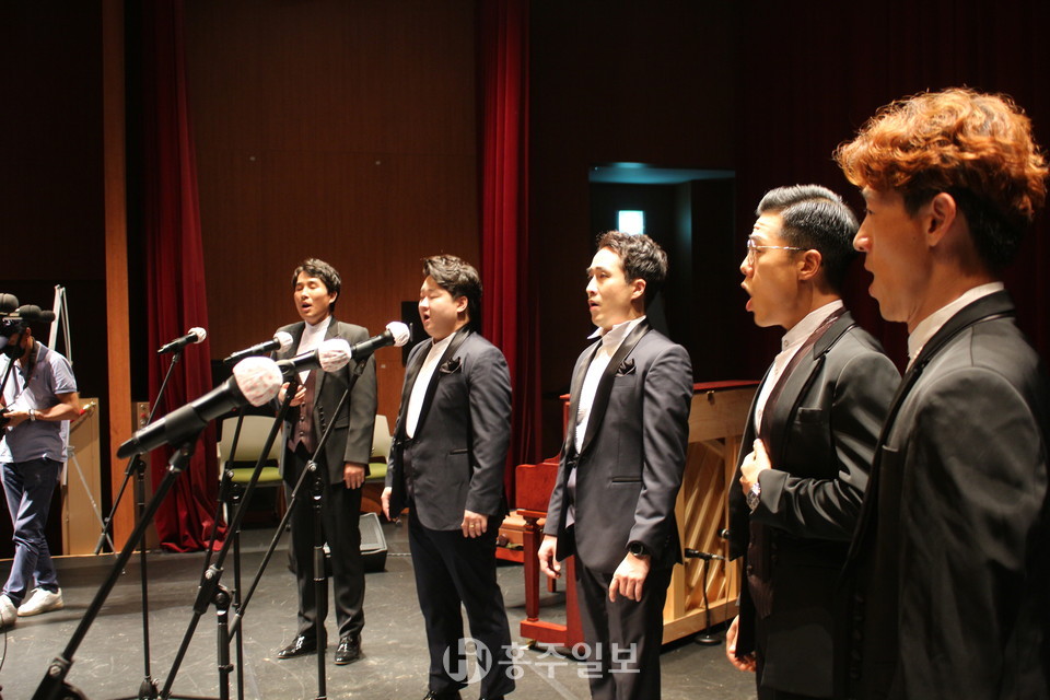 “널 만난 세상, 더는 소원 없어. 바램은 죄가 될 테니까…” 7월의 어느 멋진 날, 지난달 31일에 예산군청 추사홀에서 노랫소리가 울려 퍼졌다. 그것은 충남의 여러 지역에서 활동하던 이승용, 김현범, 유승화, 박신유, 이윤석 이 5명의 성악가들과 피아니스트 이태정이 모여 결성한 홍성의 남성 중창단 ARTIS(아르티스)가 만들어낸 아름다운 하모니였다.