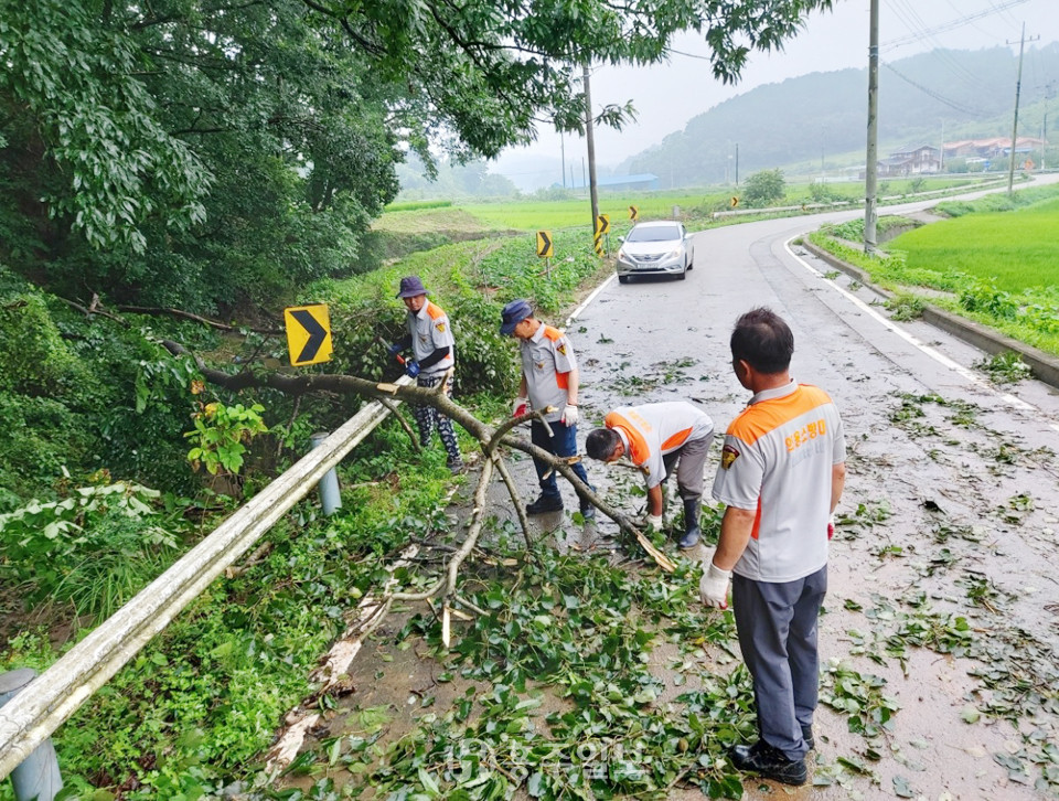 특히 지난 6일부터 홍성경찰서 직원 13명, 홍동의용소방대원 8명, 홍동자율방범대 4명 등 25명이 팀을 이뤄 도로변 전도된 위험수목 제거와 호우 피해 응급복구 활동을 지원해 피해 복구에 힘썼다.