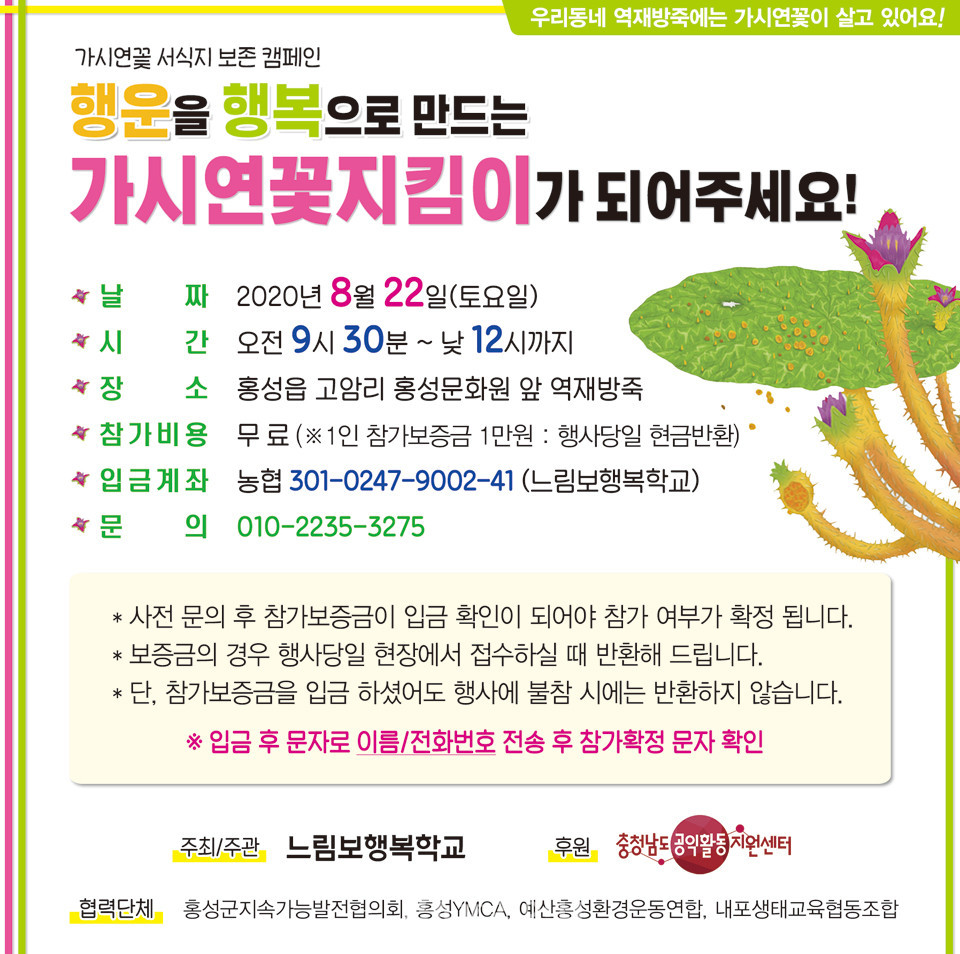 오는 22일 느림보행복학교는 고암리 역재방죽에서 가시연꽃 서식지 보존 캠페인을 개최한다.