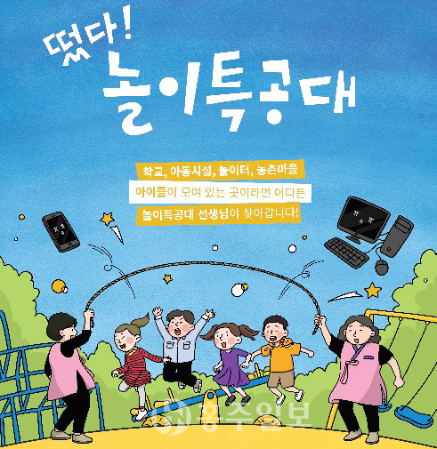 홍성군이 아동의 놀이기회 확대와 사회적응력 향상을 위한 놀이프로그램 ‘I(아이) 신나 YOU(유), 떴다! 놀이특공대’를 올해 12월까지 운영한다. 이번 사업은 지난 5월 보건복지부 놀이혁신 선도지역 공모사업에 전국 군 단위 유일하게 선정된 것으로 놀이 전문가가 △방과 후 교실 △마을놀이터 △복지시설 △농촌 등을 찾아가 아동들의 발단 정도에 맞춘 놀이 프로그램을 제공한다.