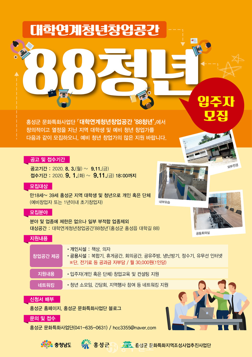홍성군, 청년창업공간 ‘88청년’ 입주자 모집