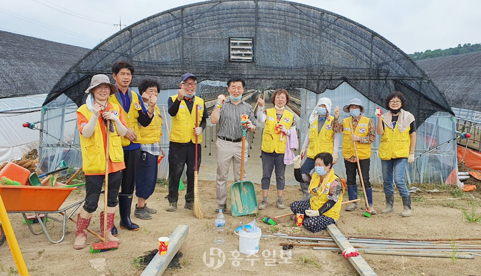 대한적십자사 홍성지구협의회(회장 윤일순) 회원 20여명은 주말을 잊은 채 지난 15일 장마로 인해 피해를 입은 홍북읍 대인리의 한 농가를 찾아 5동의 하우스를 복구하는 활동을 실시했다. 이날 충남도의회 이종화 의원이 봉사원들과 수해복구에 나서 일손을 돕고 수해피해 농가를 격려했다.